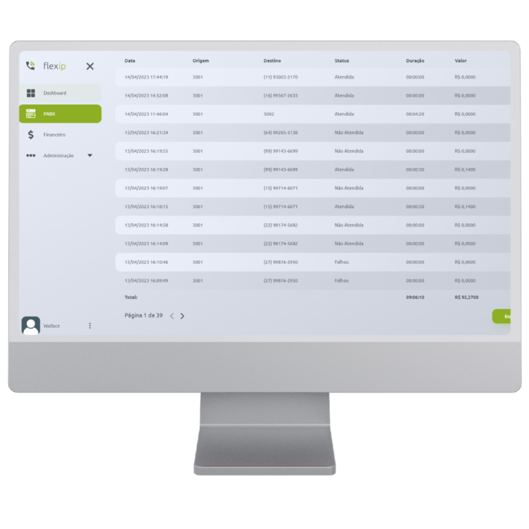 Além de tudo isso no gerenciamento WEB você poderá visualizar através de relatórios as ligações feitas e recebidas através o seu PABX Virtual FlexIP